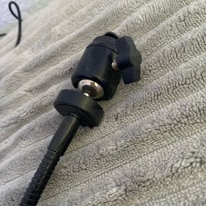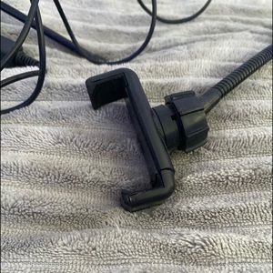 You can clip in your phone and have it angled any way you want it.