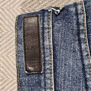 These gently worn jeans are in excellent condition, showing minimal signs of wear. The classic blue wash with subtle fading adds a touch of vintage charm, making them a versatile addition to any wardrobe. Whether you’re dressing up for a night out or keeping it casual for a day of errands, these jeans will effortlessly elevate your outfit. The mid-rise and slim straight cut ensure a flattering fit that pairs well with a variety of tops and shoes.