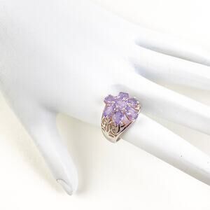 Ring Purple Flower Faceted Synthetic Amethyst Silver Tone Thai Fashion Vintage