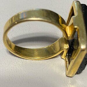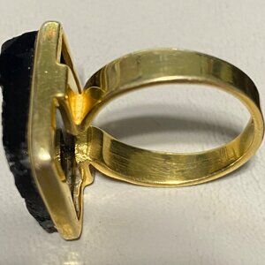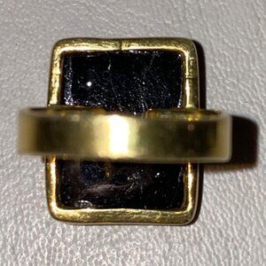 Ring Raw Possibly Obsidian Size 9 Rectangle Gold Over Sterling Silver 925 ISJ