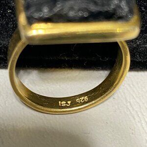 This ISJ ring features a striking possibly black obsidian rectangle, set in gold over sterling silver 925. A perfect style statement for women, it is available in size 9.