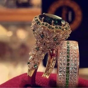 Fashion Luxury Princess Ring Set Cubic Zircon Bridal Marriage Elegant Rings for Women Couple Wedding Jewelry Accessories. Sizes 6-10 Available