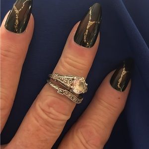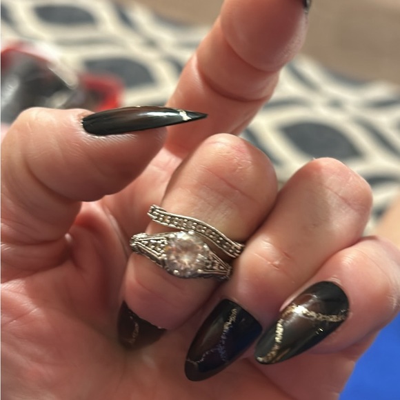 Ring Set, Band & Ring with Center Marcasite Stone Over 2 Carats total, Sterling Silver with Platnium Size 8, no missing stones no discoloration excellent condition
