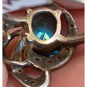 Ring Size 6.5 Blue Glass Sterling Silver 925 Women Semi-Precious Stone