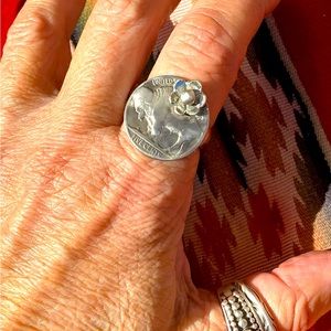 Ring made from 1930βs Buffalo Nickel, hand made sterling flower, sterling band π¦¬πΈ