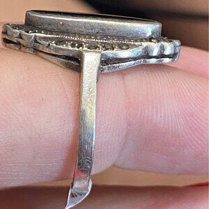 Ring Size 9 Black Tourmaline Marcasite Sterling Silver 925 Women Semi-Precious S