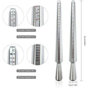 🧿Durable Material - Ring sizer mandrel comes from aluminum material and is solid strong, and the 27pcs ring sizer set is made of stainless steel, polishing Cloth make the silver jewelry sparkling, durable and does not rust, smooth edges do not hurt your hands.