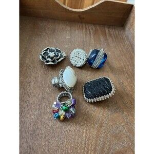 Ring Stretch Adjustable Flower Faceted Cluster Beads Green Red Blue Set of 6