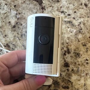 Sleek Ring motion sensor in white. Minimal, unobtrusive design. Simple to position and integrate with Ring products.