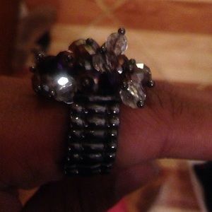 Purple stone chain. Many ways you can wear it. Ring fits all sizes, gray band and different shade of purple for stones.
