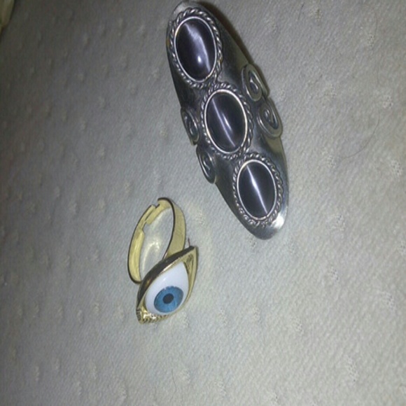 Third eye ring with gold and purple crystal ring with silver