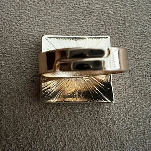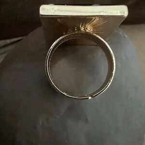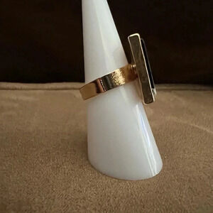 Ring- gold tone with black & white square faux stone accent. Size: 6. Gold tone. Adjustable back can make the band wider. Great costume jewelry piece. Brand new, never worn. NWOT.