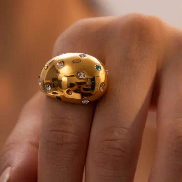 Ring - gold bubble w color stones. Designer Inspired Bottega Veneta cocktail Ring