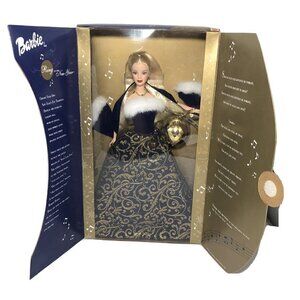 Ring in the New Year Barbie New Years 2001 #52742 Mattel Barbie new in box. She has never been removed from the box. Box has signs of wear from storing. The velcro tab on front to open the box has tear - SEE photos