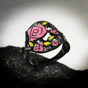 Ring jewelry rose flower pink black Beauty and the Beast 925 silver new