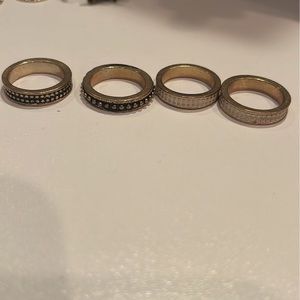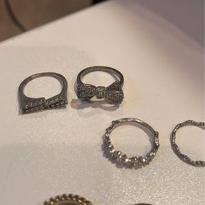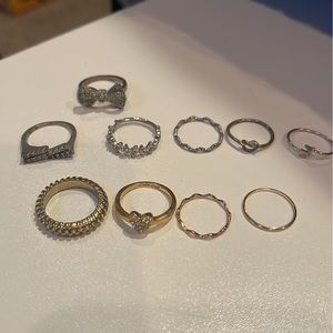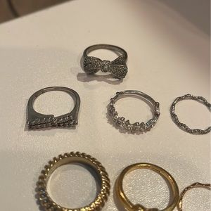 Gold, silver, and bronze mixed. Some silver are tarnished I guess you would say… I’m throwing these in for free in case you know what to do with them .. see pics. Some size adjustable. Rings range from 7-8. Make an offer! Bundle items for discounts!!