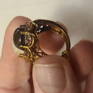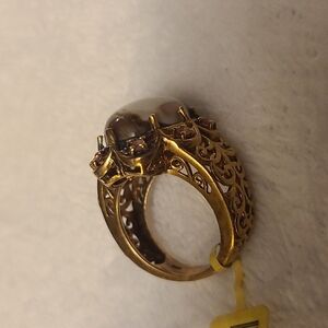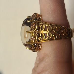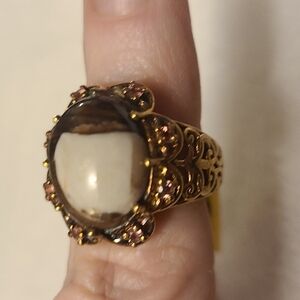 New stunning ring. Gold color. Brown and cream stone. Faux pink jewels. Made in India.