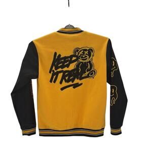 Ring of Fire MONEY MAKER WOOLEN PATCHED VARSITY JACKET black yellow size xl