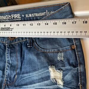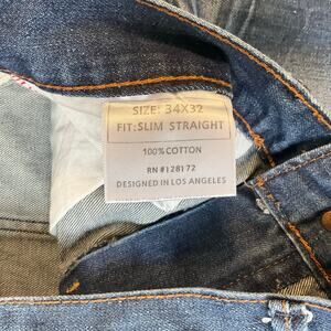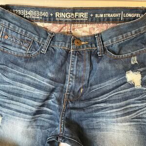 Ring of Fire Men Slim Straight Jeans size 34 x 32 Blue Mid Rise Frayed
