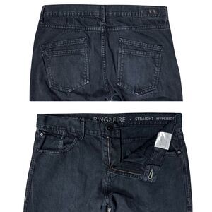 Ring of Fire Men's Jeans Hyperion Ave Denim Straight Leg Black Pockets 34x30 Y2K