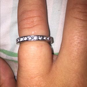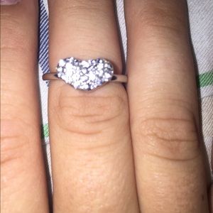 Ring set that includes a stretchy flower ring, rectangular sparkly adjustable ring, heart ring with diamonds, "X" ring with diamonds, simple oval ring, "LOVE" ring, and a simple twisted ring. Never been worn