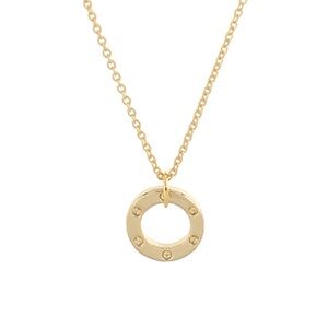 This necklace combines a striking ring design with nail head details, creating an edgy yet stylish accessory.