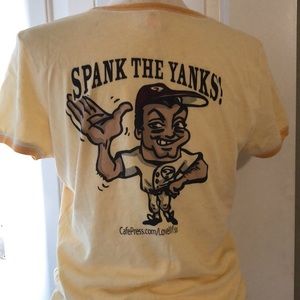 Spank the Yanks tee. Yellow EUC. Rare Red Sox tee. Girls large but could fit 18” armpit to armpit. Small spot in the front