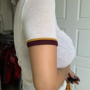 Never worn, tied up myself but can be untied and worn normal, gold and burgundy