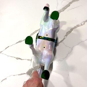 Iridescent White Horse with Dark Saddle and Pink Feather in Mane