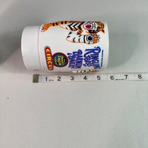 Vintage circus-themed mugs ideal for collectors or enthusiasts of Ringling Bros memorabilia. Durable design with bold tiger graphics.