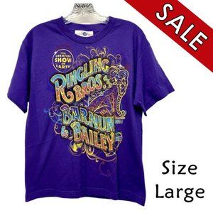 In excellent pre-owned condition! It appears to have never been worn - just tucked away in the closet. The circus ran from 1919 till 2017 - 146 years! This is a really cool t-shirt that captures the WOW of the circus. UNISEX - Ringling Bros and Barnum & Bailey Circus graphic short sleeve T-Shirt. The label is showing a size large, but check the measurements because it runs small and is measuring more of a size medium.