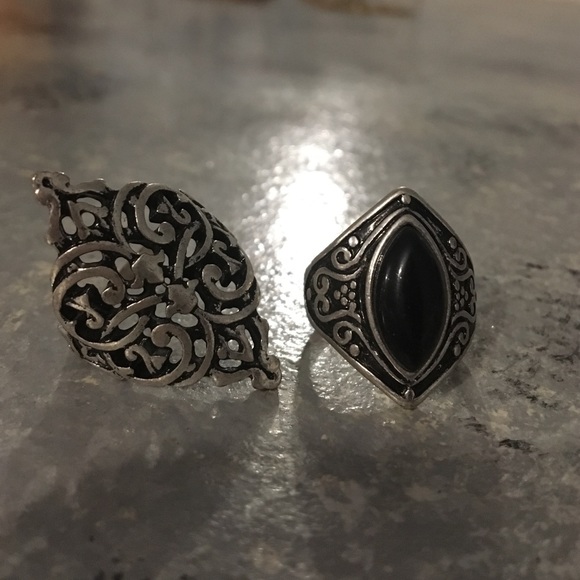 Silver and black statement rings