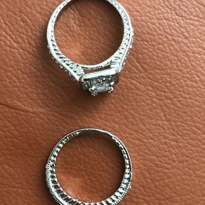 Rings Sterling Silver 925. Engagement. Cubic Zirconia and Sapphire. Size 7