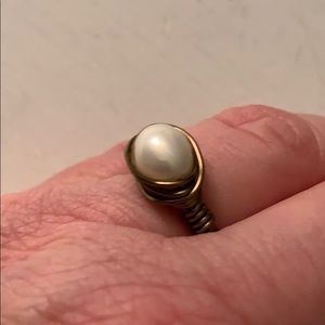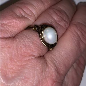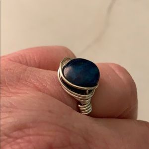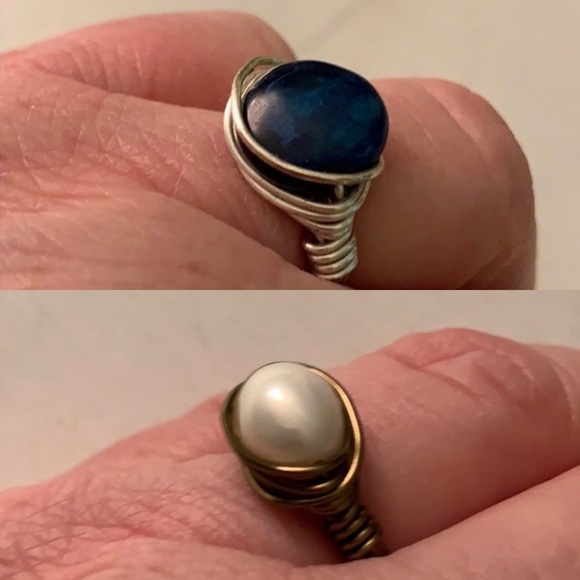 Handmade rings. One silver with blue stone. One gold with pearl stone.