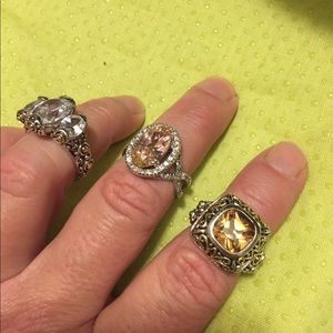 Three beautiful rings size 7 to 8. Excellent shape. Smoke free home. Oval is a light pink. Square stone is a light amber