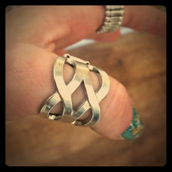 #1 silver ring with stretchy band (great for scarves too)