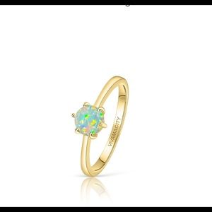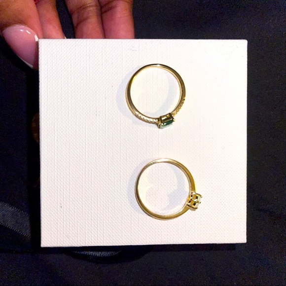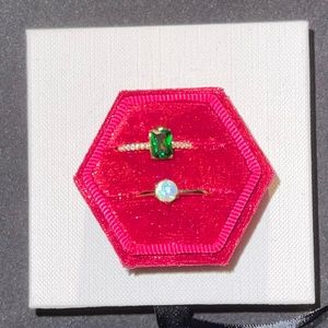 These two rings are really pretty they are just smaller than I imagined. New. Never worn. No tags came with order. Emerald ring is a size 8. White opal is size 9. They are both 14k gold vermeil band over pure 925 solid sterling silver.