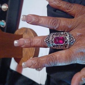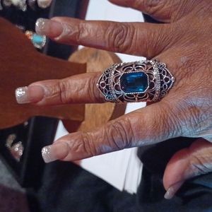 this is a beautiful blue and silver and the other one is red and silver identical Rings just different colors $5 paparazzi stretchable band rings one-size-fits-all lead and Nickel Free. each ring is $5 a piece