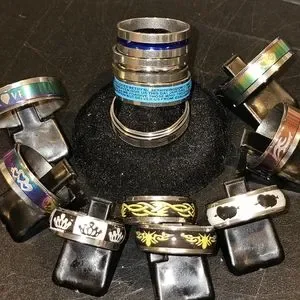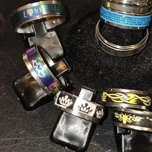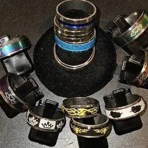 12 rings, stainless steel rings, variety of sizes and spinners rings and designs