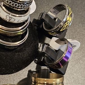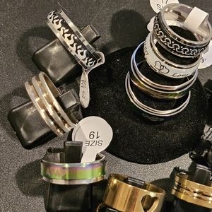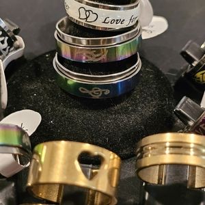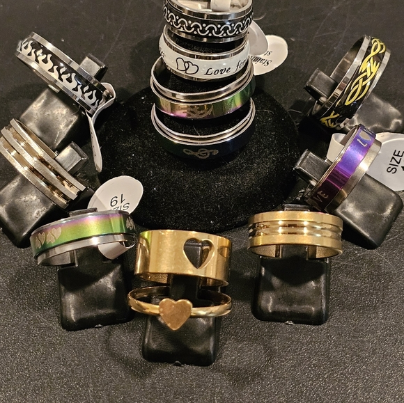 12 rings, stainless steel rings, variety of sizes and spinners rings and designs