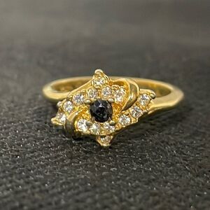 Ring with small black gem in the center and white gems around it Size 8 In good condition