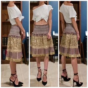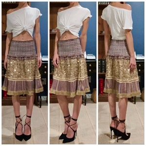 Rinku Anthropologie Stretch Lurex Metallics Sequin A Line Midi Skirt Small