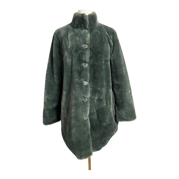 Rino & Pelle Green Faux Fur Jacket Size 42 / US 6 Mob Wife Twee Glam Warm Furry