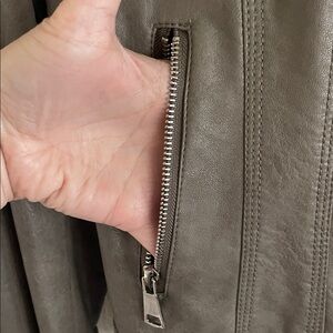 Elevate your style with this sleek gray leather jacket. Perfect for any occasion, this jacket offers both comfort and sophistication.