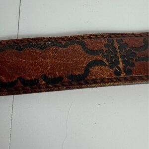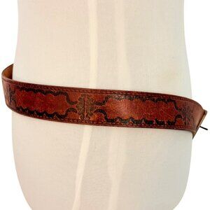 Rio Grande Western Tooled Belt Sz 38 Cognac Brown Steerhide Leather VTG Cowgirl