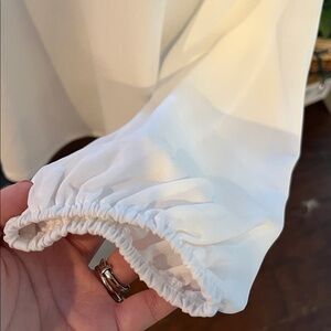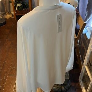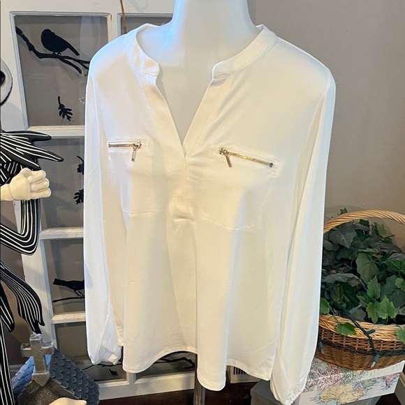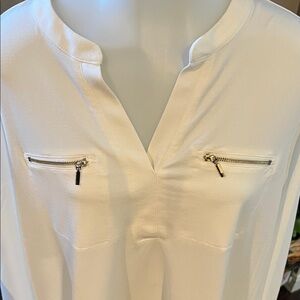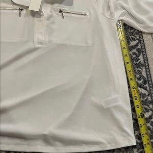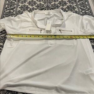 Banded sleeve v neck white top with zipper accents. Size PXL. Rough measurements in photos. 95% polyester 5% spandex. NWT