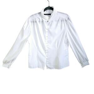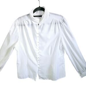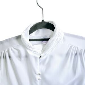 Rio Women's 15/16 Mandarin Collar Pearl Button Up Blouse White Elevated Basic