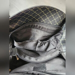 Rioni Lg Leather signature buckle carrier handbag Navy And gold 16"Lx10"deep