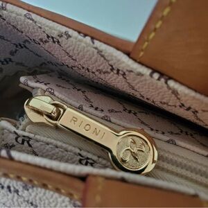 This stylish Rioni tote bag features a sophisticated beige and tan design, perfect for any occasion. Its elegant pattern will add a touch of class to any ensemble. Loved it but I have one that is almost the same color, so here's your chance!