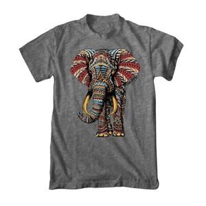 Riot Society Men's Heather Gray Crew Neck Ornate Elephant Graphic T-Shirt Medium